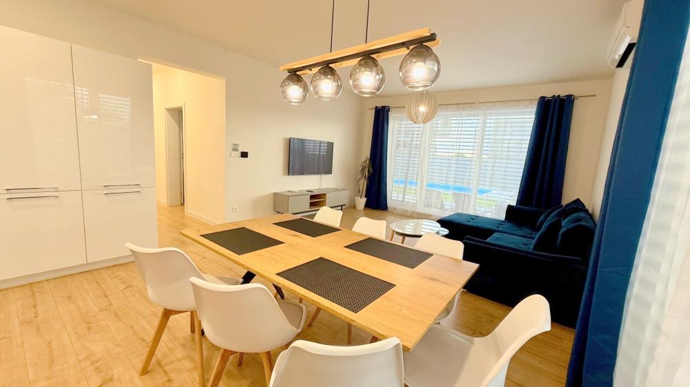 Zabudnite na svoje starosti na tomto priestrannom a pokojnom mieste s bazénom. Priestranná klimatizovaná novostavba rodinného domu o rozlohe 120 m2, vhodný pre maximálne 8 ľudí. Vírivka a plynový gril spríjemnia Váš pobyt s rodinou a deťmi. Záhradné posedenie s dostatkom miest na sedenie. Tichá lokalita na okraji obce Dunajská Lužná, len 15 min autom do centra Bratislavy. X-Bionic Sphere len 8 kilometrov od domu. Jedna z najlepších cyklotrás na Slovensku vzdialená 8 km od domu. Parkovanie pre maximálne 3 autá.