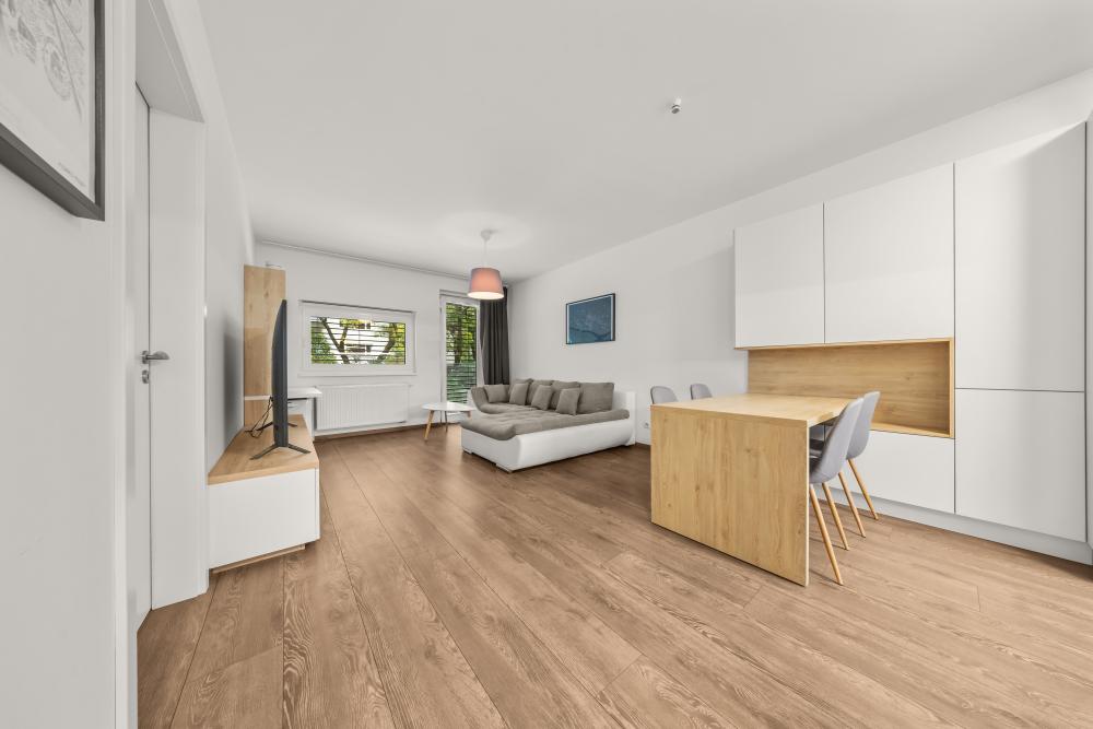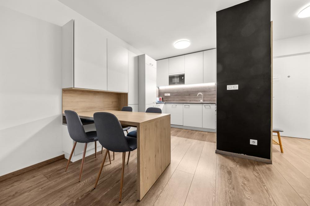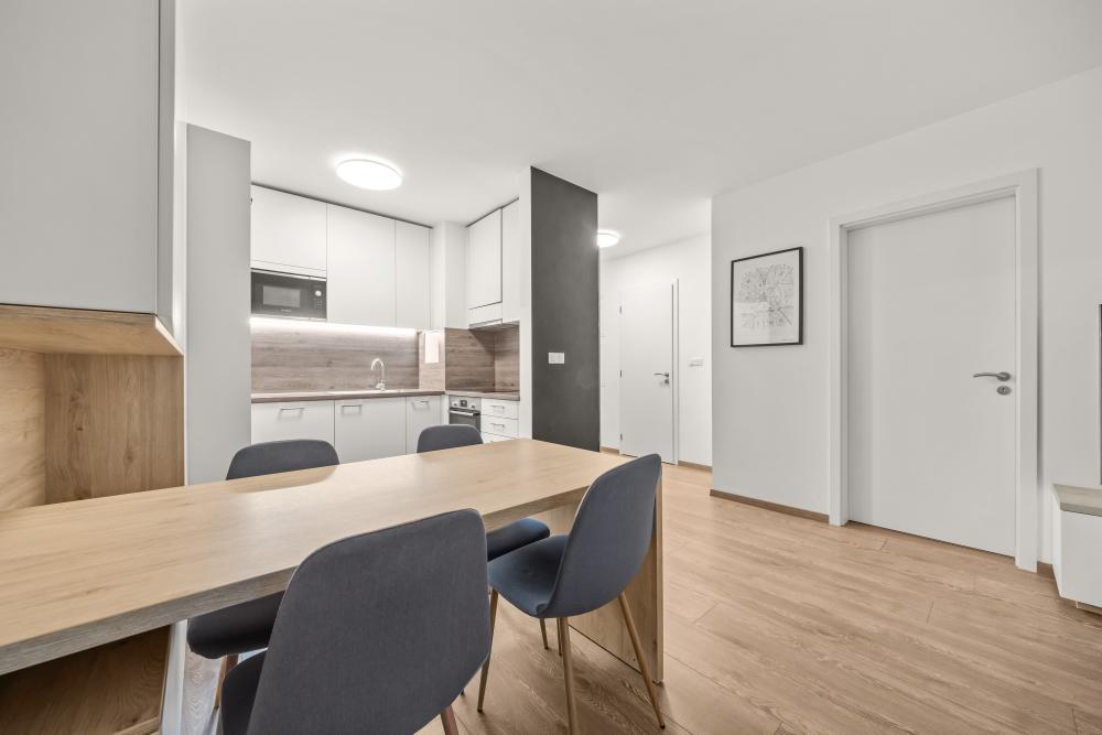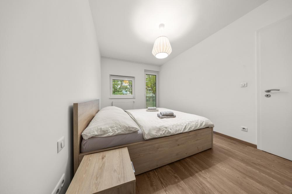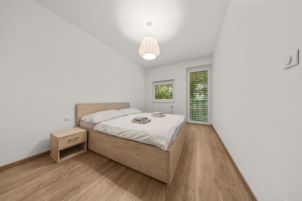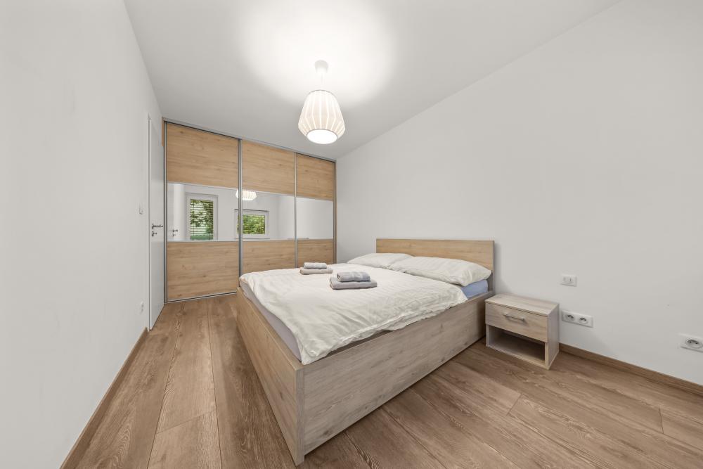 Apartmán sa nachádza na 1. poschodí, novostavby skolaudovanej v roku 2019 , apartmán ponúka komfortné ubytovanie pre 4 osoby (60 m2). Súčasťou apartmánu je obývacia izba s klimatizáciou a rozkladacou sedačkou, kuchynský kút, samostatná spálňa, kúpeľňa s vaňou a WC, predsieň.centrum mesta 2 zastávky električkou.