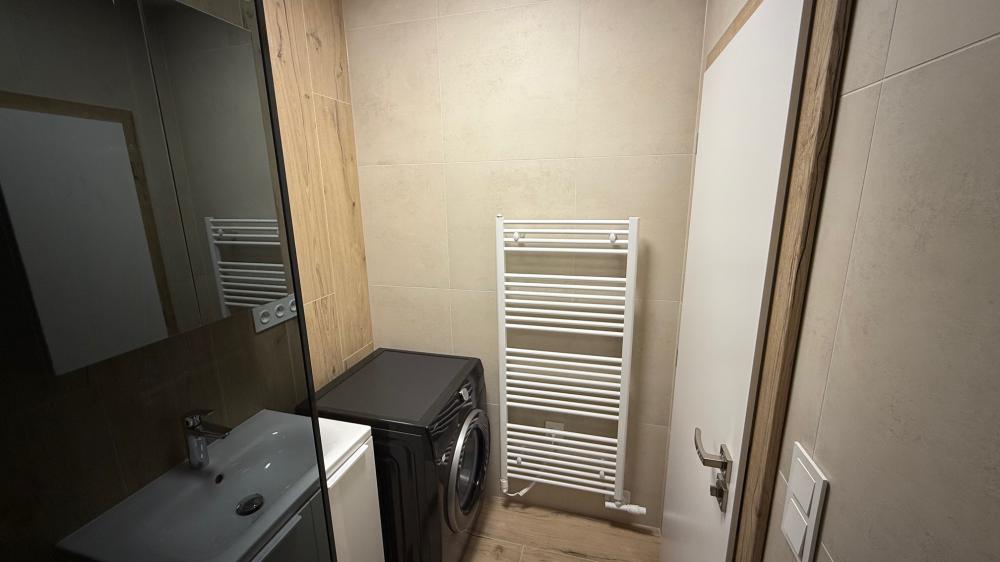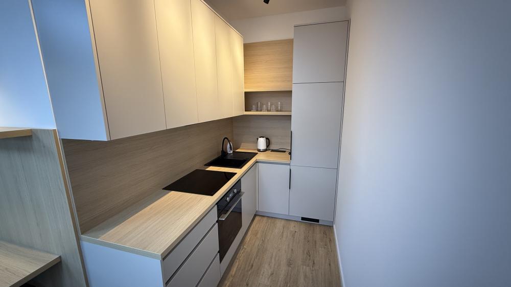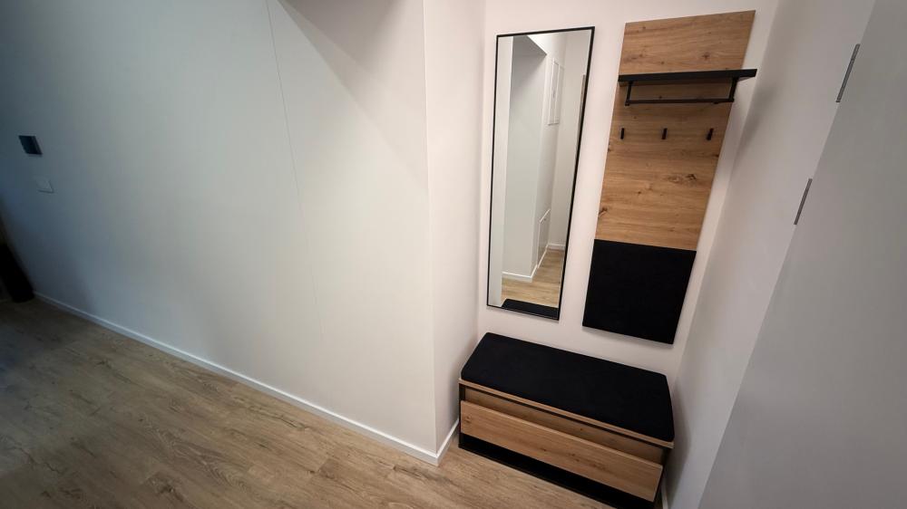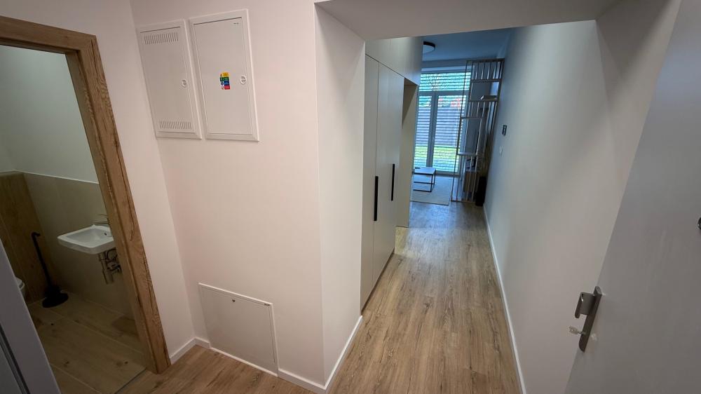 Ubytujte sa v modernom a útulnom jednoizbovom byte s rozlohou 40 m², ktorý dopĺňa súkromná 15 m² záhradka ideálna na rannú kávu či večerný oddych.